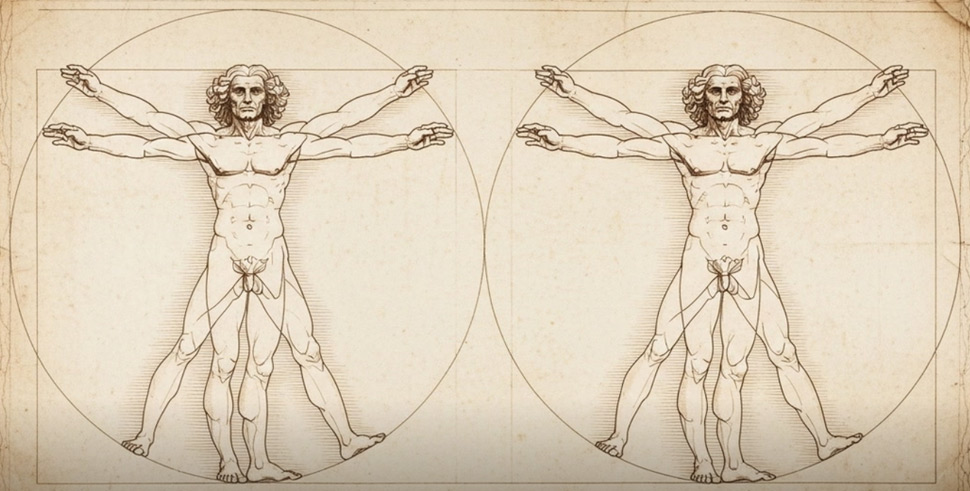 Esta revelación resuelve un enigma que ha desconcertado a académicos desde el siglo XV. A diferencia de otras teorías, la propuesta de Mac Sweeney se ajusta con precisión a las medidas del dibujo original. En su análisis, plantea que Da Vinci resolvió la proporción desplazando los centros de ambas figuras: ubicó el del círculo en el ombligo y el del cuadrado en la ingle, lo que permitió que las extremidades se alinearan dentro de ambas formas sin romper la armonía visual.